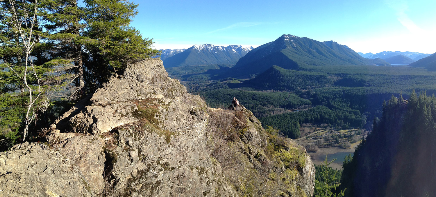 The parking lot and facilities at Rattlesnake Lake are well maintained and the trail is clean and kept. You'll hike up several switchbacks through second growth forest and ultimately find yourself at the ledge itself which is a large, exposed rock with very sheer cliffs. Keep a leash on your dog and your kids. Views to the north and west open up to the Cedar River watershed, Mount Si, Mount Teneriffe, Mailbox Peak, Mount Washington, Rattlesnake Lake and Chester Morse Lake.