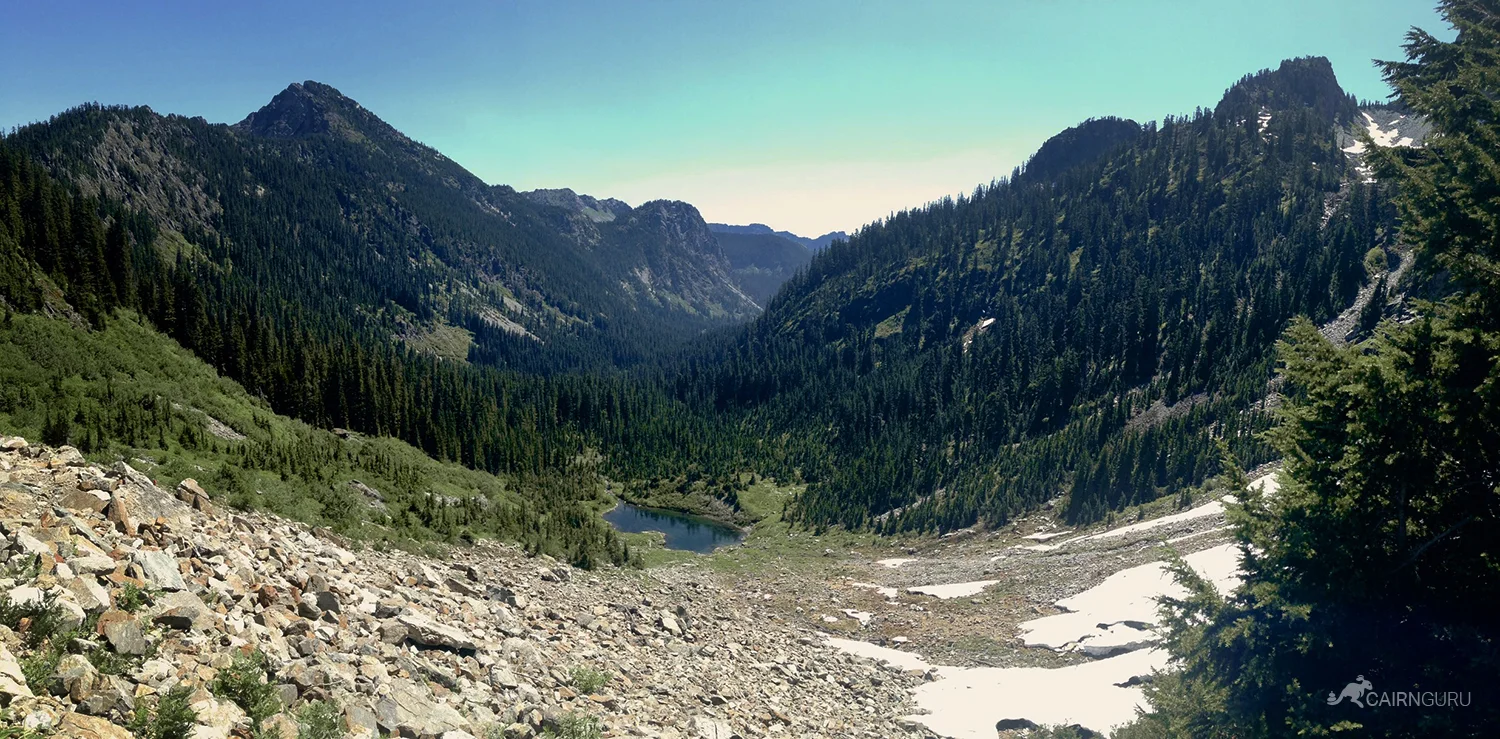 In an attempt to get off the highway (trail), I took the offshoot trail to the Source Lake Overlook because I had read that there was a back door into Snow Lake from this direction. I scrambled up a ways looking for it, but the trail seemed to stop and I didn't want to get too far away if I needed to backtrack. Had I found this other trail, my review and impression of Snow Lake would probably be much different.