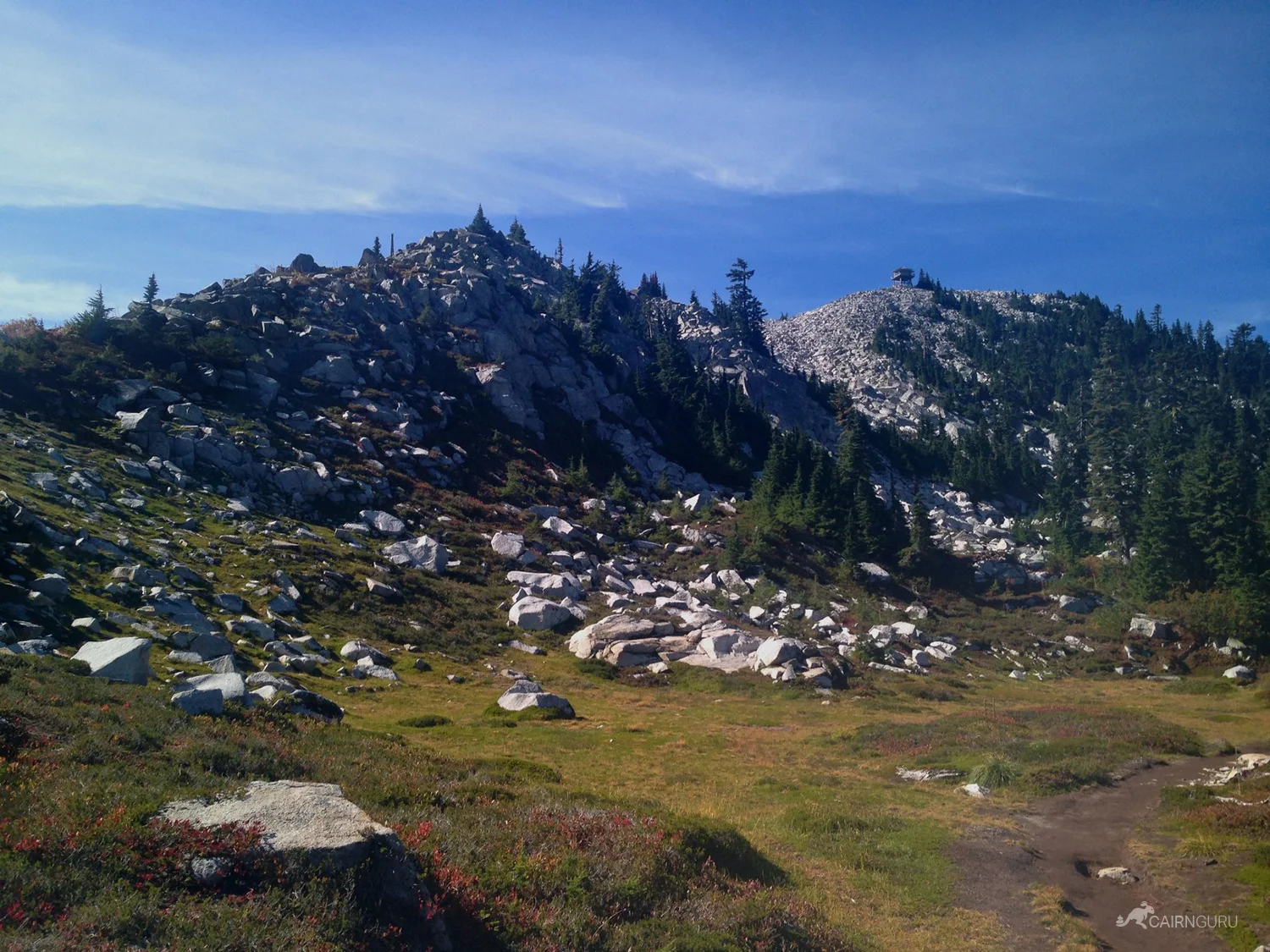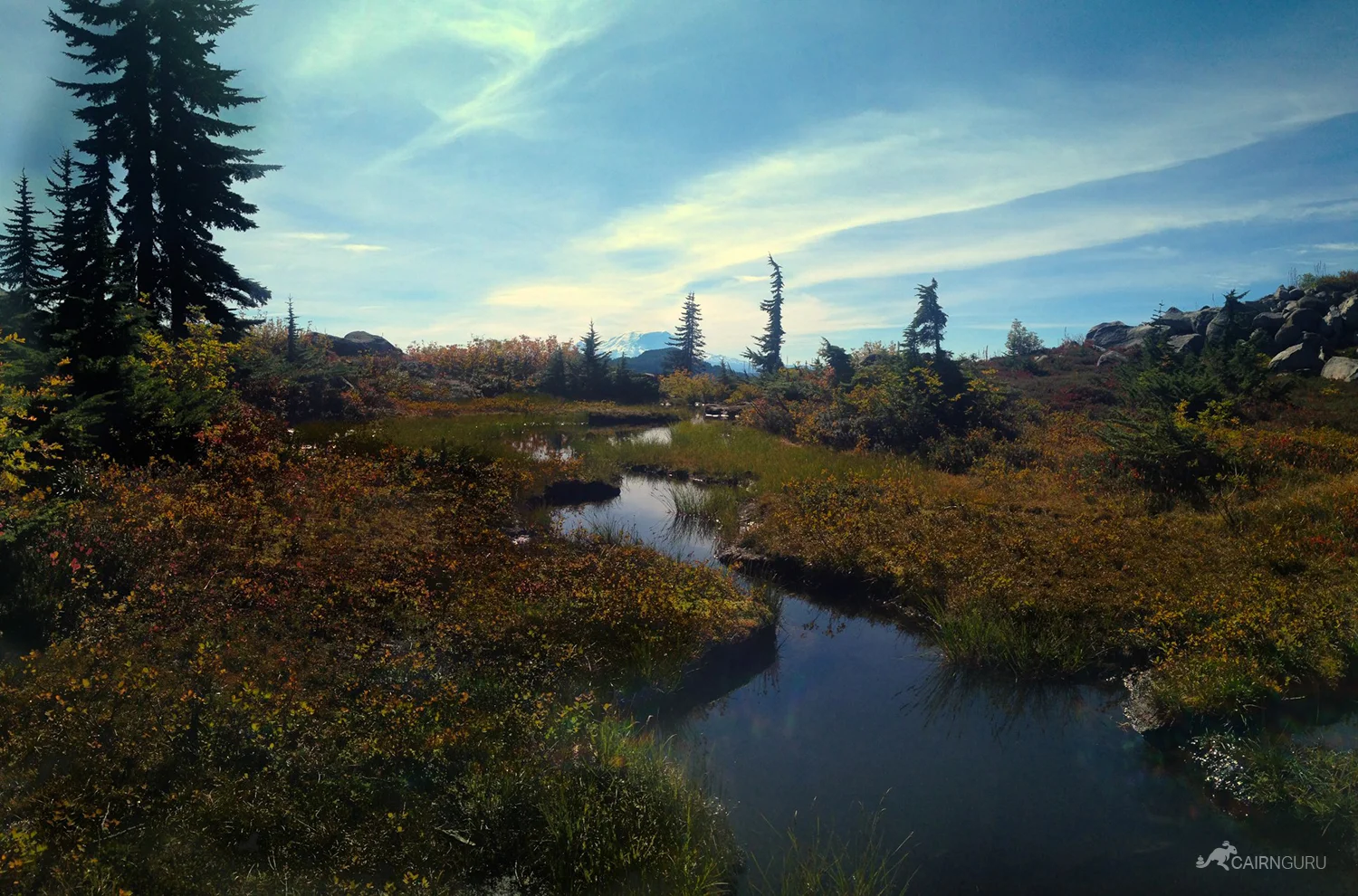 Once you reach the shoulder you will break into a meadow with a small pond and picturesque stream. This is very unexpected and tranquil. The trail then leads to the backside of the mountain where the terrain changes again and views open up to the fire lookout.